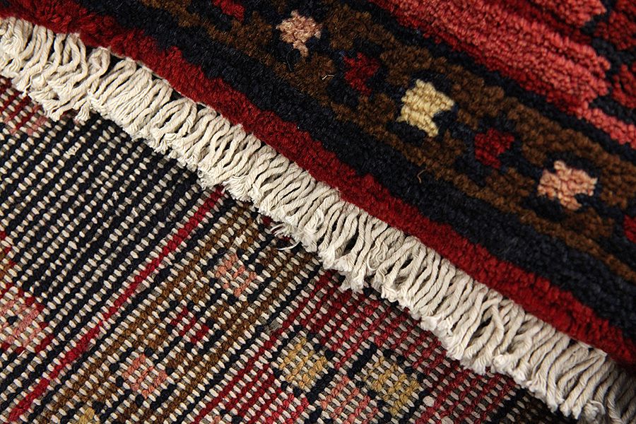 Abrash: Due to the different amount of grease in the wool and the added salt during the process of dyeing, the wool has got a varying colour absorbance. This is not very visible before weaving. During the weaving though, lines of the same colour are formed in the carpet. This is called Abrash (which in Farsi means little cloud) and it shows that the wool was not manufactured using chemical means and marks the naturalness and authenticity of the carpets. Examples