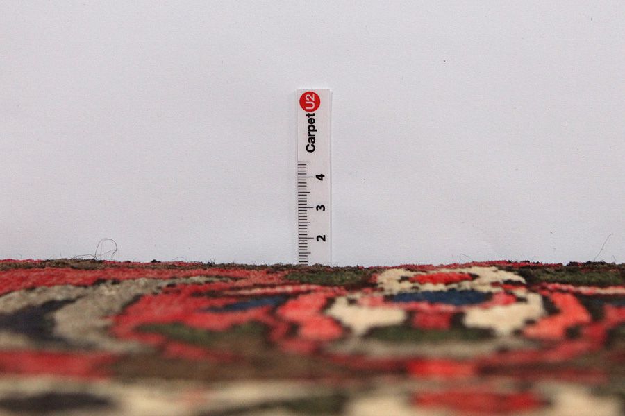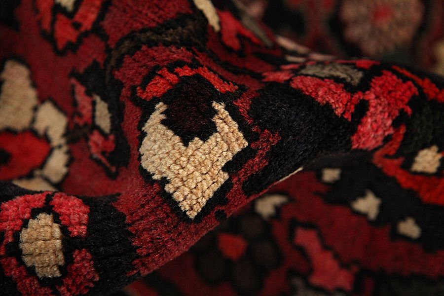 Abrash: Due to the different amount of grease in the wool and the added salt during the process of dyeing, the wool has got a varying colour absorbance. This is not very visible before weaving. During the weaving though, lines of the same colour are formed in the carpet. This is called Abrash (which in Farsi means little cloud) and it shows that the wool was not manufactured using chemical means and marks the naturalness and authenticity of the carpets. Examples