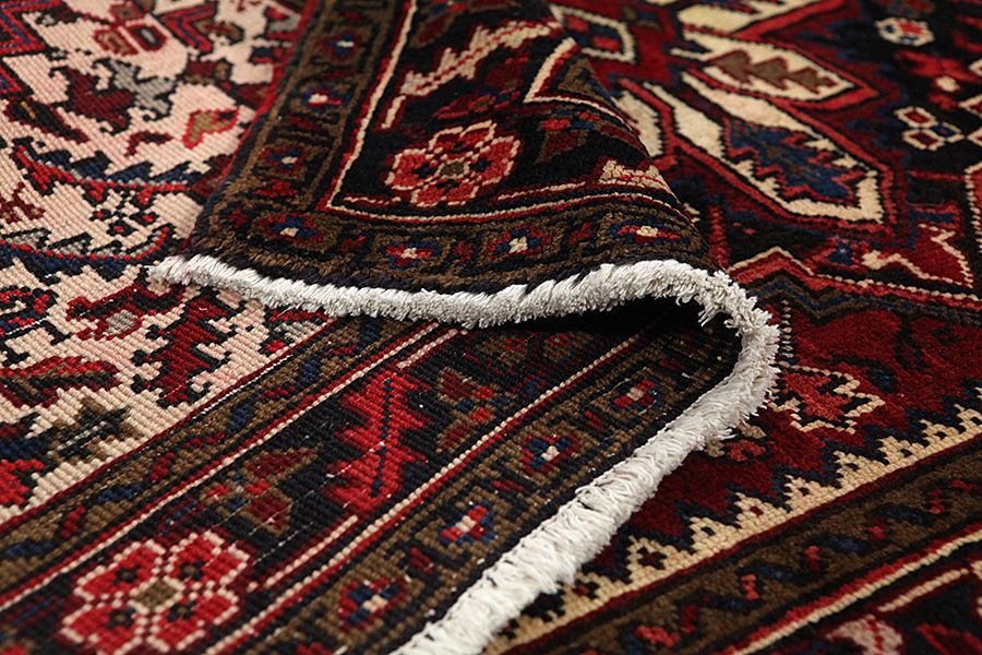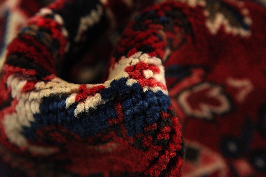 Abrash: Due to the different amount of grease in the wool and the added salt during the process of dyeing, the wool has got a varying colour absorbance. This is not very visible before weaving. During the weaving though, lines of the same colour are formed in the carpet. This is called Abrash (which in Farsi means little cloud) and it shows that the wool was not manufactured using chemical means and marks the naturalness and authenticity of the carpets. Examples