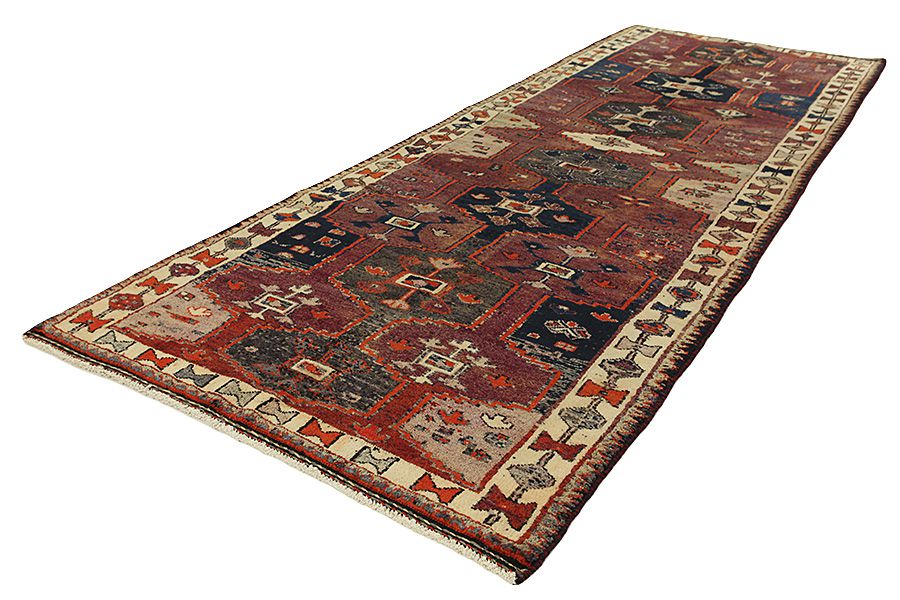 Lori Carpets : Carpets woven by the Lurs, a nomadic tribe in the mountainous Kurdish region of Southwest Iran, bordering Iraq. The Lori carpets usually have geometric shapes, often with rhombi and strictly linear scenes of the herbal and animal world. Because the areas where the Lurs live are inaccessible and isolated, they still weave with the old traditional ways, without influences from the Europeans. The centre of Luristan is Choremabad, which gave its name to the carpets woven there. Furthermore carpets have been named after the salt lake Neris.