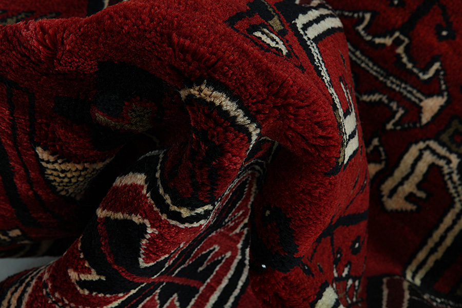 Qashqai Carpets : Qashqai carpets are woven by nomads who live in the mountainous areas of Southwest Persia, the provinces of Fars, Khuzestan, south of Isfahan and around the city Shiraz. Their carpets have a high knot density and a wide variety of designs, usually in deep red and blue colors. They weave carpets, Kilims and decorative textiles (ribbons, bags, etc.), which depict scenes from their lives with various representation of humans, animals, birds, trees and flowers. They also depict historical monuments, mostly from Persepolis.