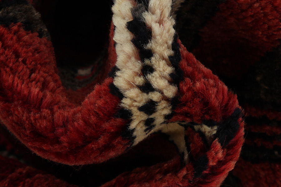 Abrash: Due to the different amount of grease in the wool and the added salt during the process of dyeing, the wool has got a varying colour absorbance. This is not very visible before weaving. During the weaving though, lines of the same colour are formed in the carpet. This is called Abrash (which in Farsi means little cloud) and it shows that the wool was not manufactured using chemical means and marks the naturalness and authenticity of the carpets. Examples
