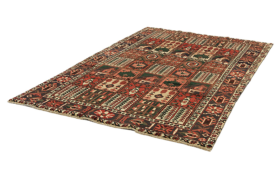 Bakhtiari Carpets : In the mountains Zagros, west of the city of Isfahan, around the town of Shahr-e-Kurd, live the nomads Bakhtiar. Their carpets are known for the design with various repeating squares in which flowers and animals are depicted. For this reason the design is called "garden"(Khesti). Their carpets are very durable with a dense weave and very good quality Persian wool coming from sheep grazing at a high altitude. The best Bakhtiar rugs and carpets with highest knot density are often called Bibibaff. Also in many designs we see influences from Isfahan carpets. (Boldaji - Feridan - Saman).
