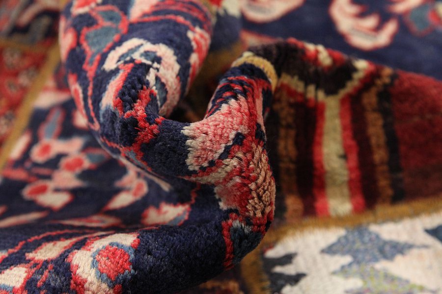 Abrash: Due to the different amount of grease in the wool and the added salt during the process of dyeing, the wool has got a varying colour absorbance. This is not very visible before weaving. During the weaving though, lines of the same colour are formed in the carpet. This is called Abrash (which in Farsi means little cloud) and it shows that the wool was not manufactured using chemical means and marks the naturalness and authenticity of the carpets. Examples