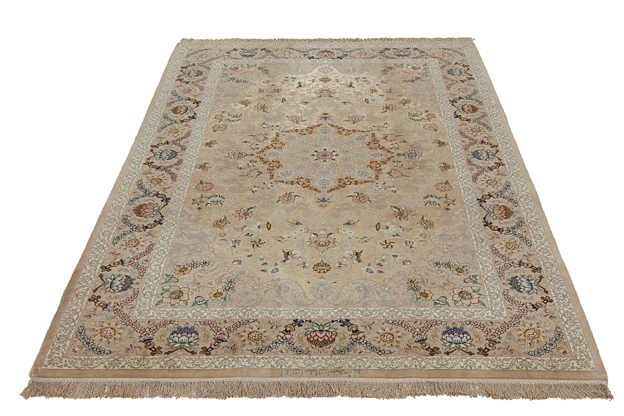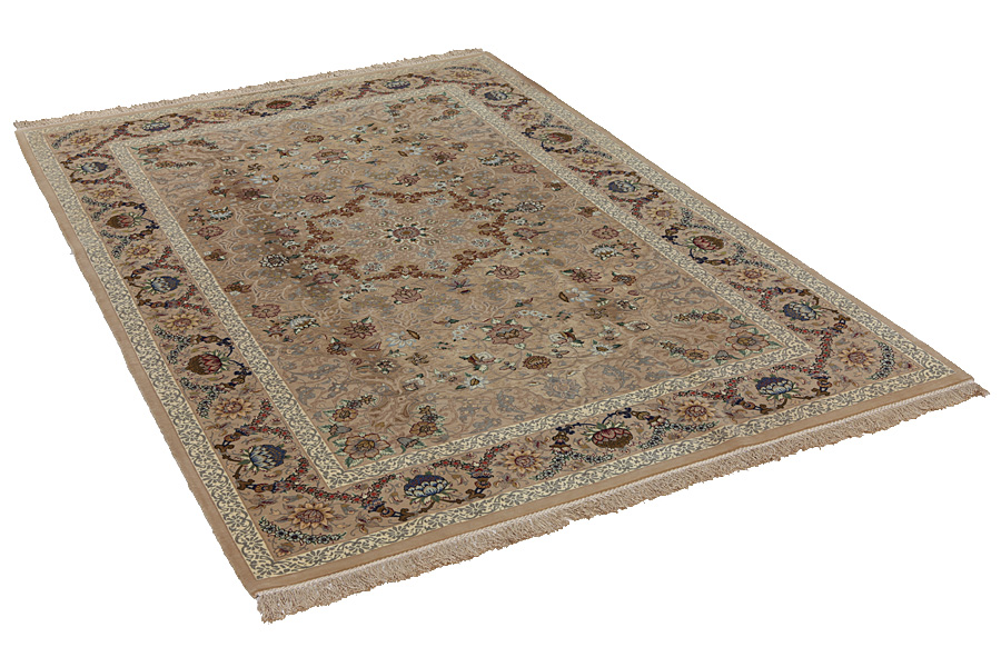 Isfahan Carpets : In the centre of Iran among the Zagros Mountains and the desert, lies the city of Isfahan. Nowadays it is an important industrial city with a population of 1.2 million. The town is an architectural masterpiece. The old carpets of Isfahan in contrast with the newer ones didn't have got a central medallion. The entire surface of the carpet was filled with elaborate spiral flowers and flower palmettes. The newer Isfahan rugs and carpets cannot be compared with those wonderful old specimens which were manufactured exclusively for nobles. But continuing the tradition, today's carpets of Isfahan also have a very fine weave and are clipped very short to reveal their design more clearly. In the weaving they also use silk to highlight certain areas of the design, especially in flowers. The warp is made of silk or cotton.
