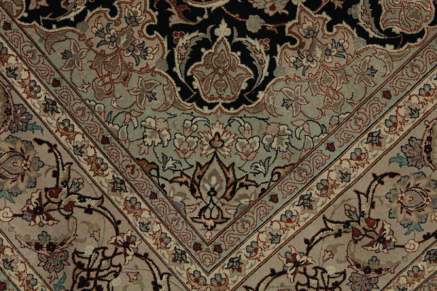 Isfahan Carpets : In the centre of Iran among the Zagros Mountains and the desert, lies the city of Isfahan. Nowadays it is an important industrial city with a population of 1.2 million. The town is an architectural masterpiece. The old carpets of Isfahan in contrast with the newer ones didn't have got a central medallion. The entire surface of the carpet was filled with elaborate spiral flowers and flower palmettes. The newer Isfahan rugs and carpets cannot be compared with those wonderful old specimens which were manufactured exclusively for nobles. But continuing the tradition, today's carpets of Isfahan also have a very fine weave and are clipped very short to reveal their design more clearly. In the weaving they also use silk to highlight certain areas of the design, especially in flowers. The warp is made of silk or cotton.