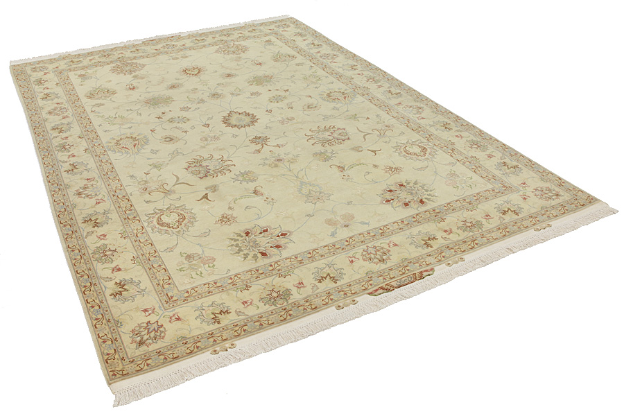 Tabriz Carpets : The city of Tabriz is the capital of Azerbaijan province in Northwestern Iran. Until the end of the caravans era it was the most important centre for trade and carpet weaving. Tabriz supplied the West with masterpieces that were made by renowned and very capable weavers. Their high quality of Tabriz carpets made them renowned in world markets. Many workshops where created where hand-woven carpets with very high density knots and high quality materials where woven. Silk and fine quality wool establish these carpets as very high class. No other city in Persia produced such large quantity or variety of carpets. With or without a medallion, their designs are full of imagination and individuality. Flowers, scenes, stanzas of poems often decorate them. Their predominant colors are beige, blue and red.