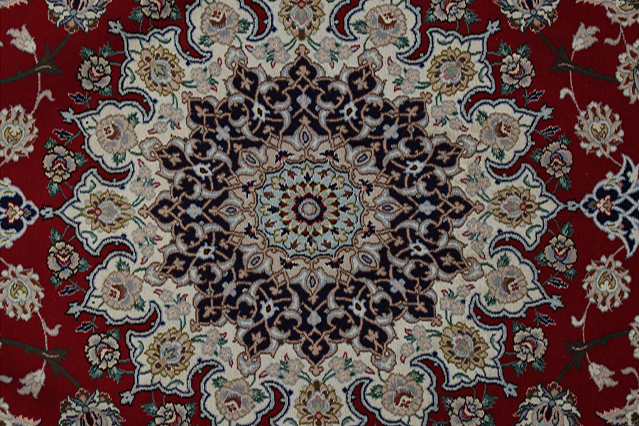Isfahan Carpets : In the centre of Iran among the Zagros Mountains and the desert, lies the city of Isfahan. Nowadays it is an important industrial city with a population of 1.2 million. The town is an architectural masterpiece. The old carpets of Isfahan in contrast with the newer ones didn't have got a central medallion. The entire surface of the carpet was filled with elaborate spiral flowers and flower palmettes. The newer Isfahan rugs and carpets cannot be compared with those wonderful old specimens which were manufactured exclusively for nobles. But continuing the tradition, today's carpets of Isfahan also have a very fine weave and are clipped very short to reveal their design more clearly. In the weaving they also use silk to highlight certain areas of the design, especially in flowers. The warp is made of silk or cotton.