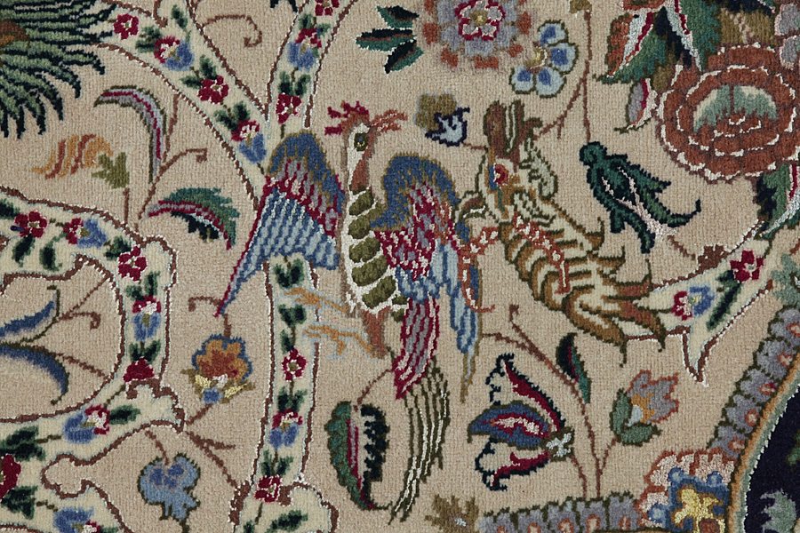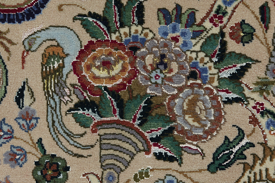 Tabriz Carpets : The city of Tabriz is the capital of Azerbaijan province in Northwestern Iran. Until the end of the caravans era it was the most important centre for trade and carpet weaving. Tabriz supplied the West with masterpieces that were made by renowned and very capable weavers. Their high quality of Tabriz carpets made them renowned in world markets. Many workshops where created where hand-woven carpets with very high density knots and high quality materials where woven. Silk and fine quality wool establish these carpets as very high class. No other city in Persia produced such large quantity or variety of carpets. With or without a medallion, their designs are full of imagination and individuality. Flowers, scenes, stanzas of poems often decorate them. Their predominant colors are beige, blue and red.
