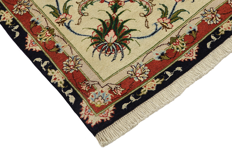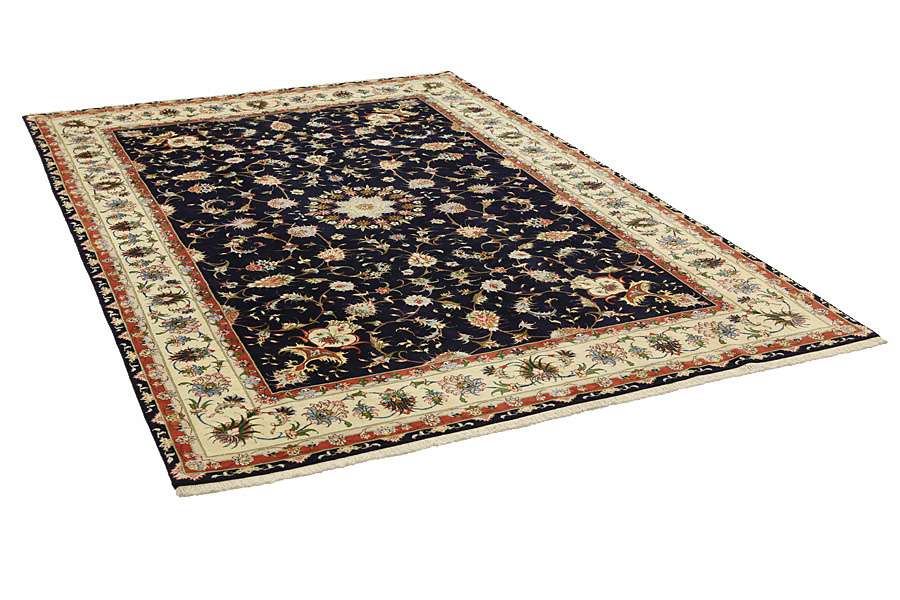 Tabriz Carpets : The city of Tabriz is the capital of Azerbaijan province in Northwestern Iran. Until the end of the caravans era it was the most important centre for trade and carpet weaving. Tabriz supplied the West with masterpieces that were made by renowned and very capable weavers. Their high quality of Tabriz carpets made them renowned in world markets. Many workshops where created where hand-woven carpets with very high density knots and high quality materials where woven. Silk and fine quality wool establish these carpets as very high class. No other city in Persia produced such large quantity or variety of carpets. With or without a medallion, their designs are full of imagination and individuality. Flowers, scenes, stanzas of poems often decorate them. Their predominant colors are beige, blue and red.