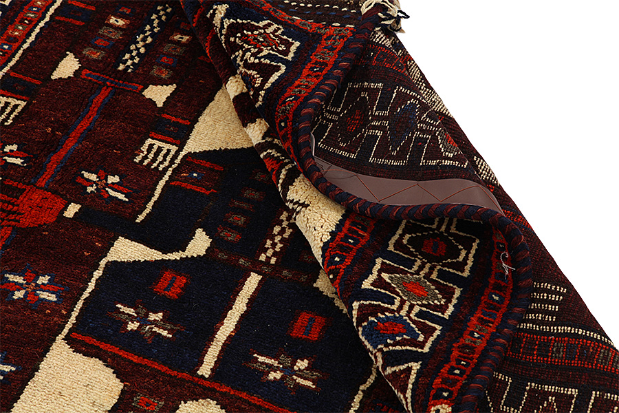 Qashqai Carpets : Qashqai carpets are woven by nomads who live in the mountainous areas of Southwest Persia, the provinces of Fars, Khuzestan, south of Isfahan and around the city Shiraz. Their carpets have a high knot density and a wide variety of designs, usually in deep red and blue colors. They weave carpets, Kilims and decorative textiles (ribbons, bags, etc.), which depict scenes from their lives with various representation of humans, animals, birds, trees and flowers. They also depict historical monuments, mostly from Persepolis.
