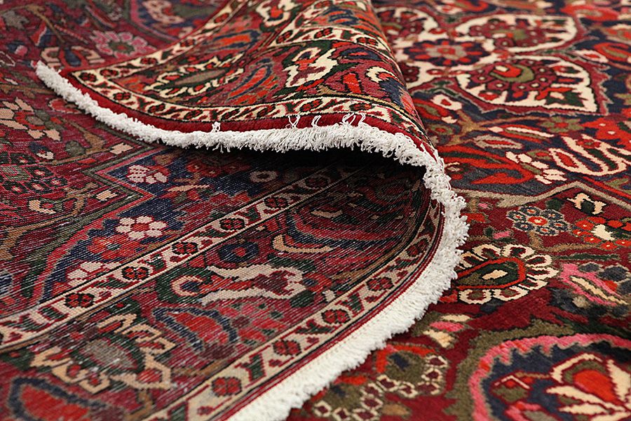 Bakhtiari Carpets : In the mountains Zagros, west of the city of Isfahan, around the town of Shahr-e-Kurd, live the nomads Bakhtiar. Their carpets are known for the design with various repeating squares in which flowers and animals are depicted. For this reason the design is called "garden"(Khesti). Their carpets are very durable with a dense weave and very good quality Persian wool coming from sheep grazing at a high altitude. The best Bakhtiar rugs and carpets with highest knot density are often called Bibibaff. Also in many designs we see influences from Isfahan carpets. (Boldaji - Feridan - Saman).
