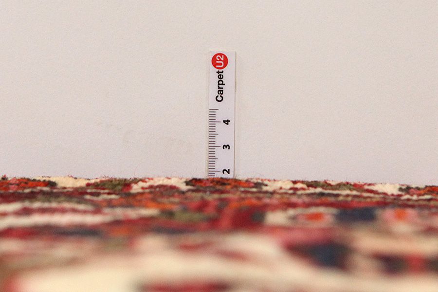 Abrash: Due to the different amount of grease in the wool and the added salt during the process of dyeing, the wool has got a varying colour absorbance. This is not very visible before weaving. During the weaving though, lines of the same colour are formed in the carpet. This is called Abrash (which in Farsi means little cloud) and it shows that the wool was not manufactured using chemical means and marks the naturalness and authenticity of the carpets. Examples