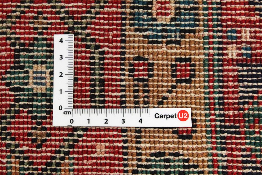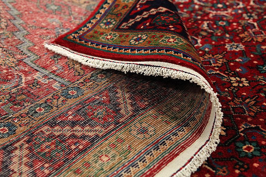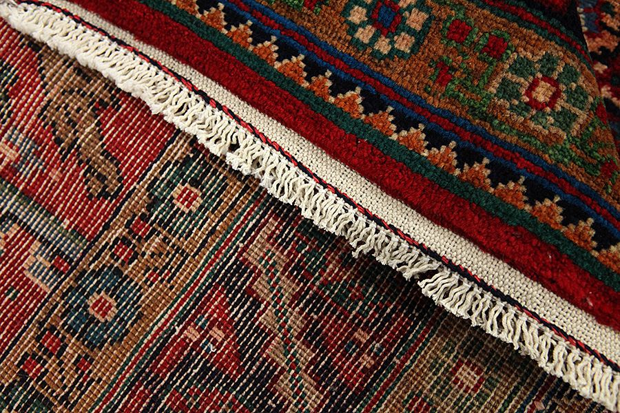 Abrash: Due to the different amount of grease in the wool and the added salt during the process of dyeing, the wool has got a varying colour absorbance. This is not very visible before weaving. During the weaving though, lines of the same colour are formed in the carpet. This is called Abrash (which in Farsi means little cloud) and it shows that the wool was not manufactured using chemical means and marks the naturalness and authenticity of the carpets. Examples