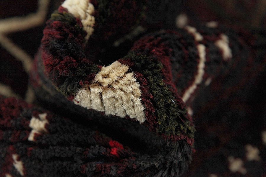 Abrash: Due to the different amount of grease in the wool and the added salt during the process of dyeing, the wool has got a varying colour absorbance. This is not very visible before weaving. During the weaving though, lines of the same colour are formed in the carpet. This is called Abrash (which in Farsi means little cloud) and it shows that the wool was not manufactured using chemical means and marks the naturalness and authenticity of the carpets. Examples